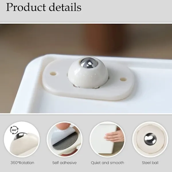 【Lätt att installera】Stark självhäftande design, enkel att installera, inga borrningar eller verktyg krävs. Fäst helt enkelt hjulen på undersidan av lådan, placera rullarna i botten av lådan och låt den gå i 24 timmar. Mjuka hjul är perfekta för att flytta och rengöra, och tunga föremål är inte längre ett problem!