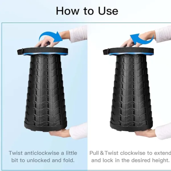 【Många användningsområden】 Denna utdragbara pall är perfekt för inomhus- och utomhusbruk. Inomhustillfällen som vardagsrum, sovrum, badrum, berg, kök, stränder, simbassänger, kontor; utomhusaktiviteter som camping, fiske, jakt, vandring, grillning, picknick, väntan, trädgårdsarbete, etc