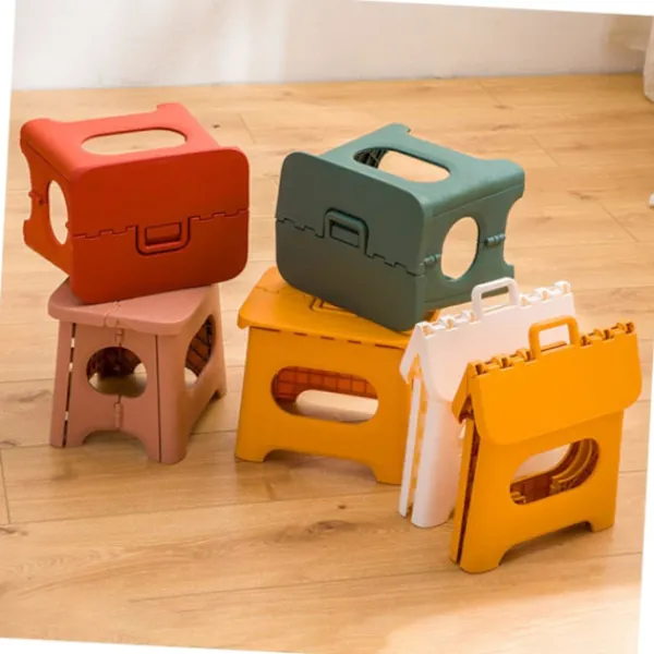 Hopfällbara pallar med bärbart handtag: runda fasningar skadar inte händerna, säkra och praktiska.