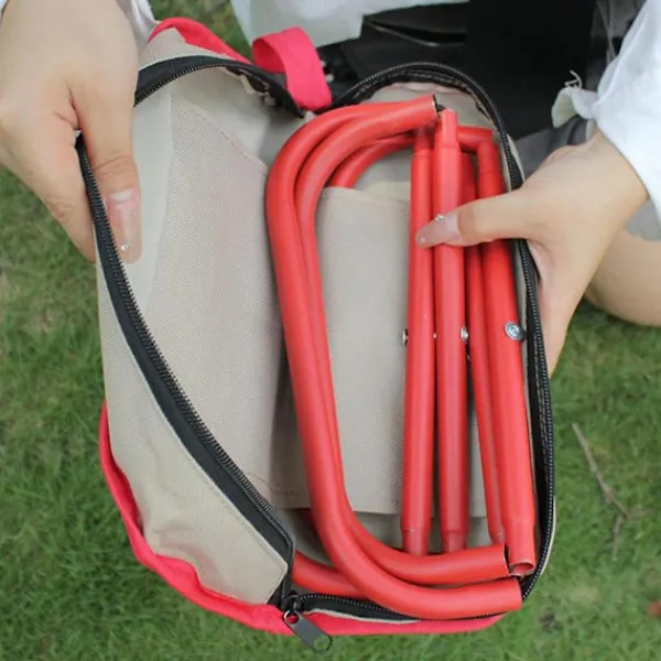 Lätt och bärbar: Hopfällbara campingpallar med inbyggt fodral med dragkedja. Du kan fälla ihop pallen till en handväska på kort tid. Vikten är 460 gram. Bekväm och kompakt, lätt för inom- och utomhusbruk.