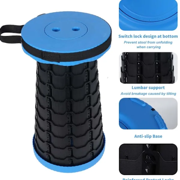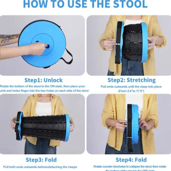 SJÄLVÖPPNINGSFÖRHINDRANDE: När denna hopfällbara pall är stängd kommer snäpplåsningarna som är utformade på locken att förhindra att pallen öppnas av sig själv. Detta gör det bekvämare och enklare att ta med den på utomhusaktiviteter.