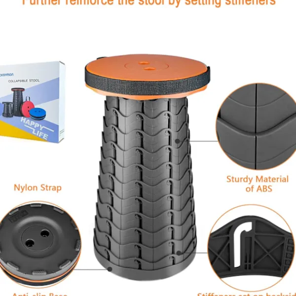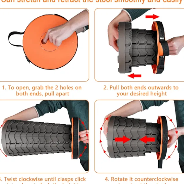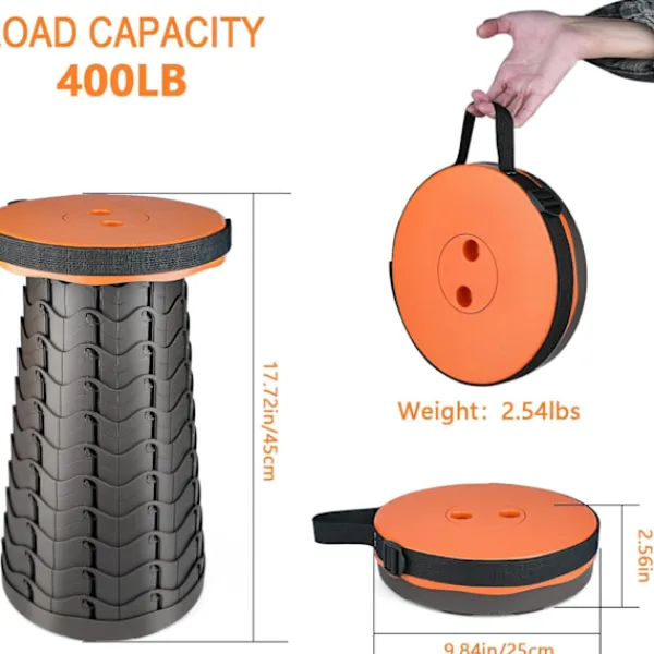 BÄRBAR & LÄTT: Denna teleskopiska pall väger endast 1,15 kg med en diameter på 250 mm. Den justerbara remmen gör pallen lätt att bära i handen eller hänga på axeln. Perfekt att använda för camping, fiske, vandring, jakt, picknick, BBQ. Kan även användas i vardagsrum, sovrum, badrum etc.