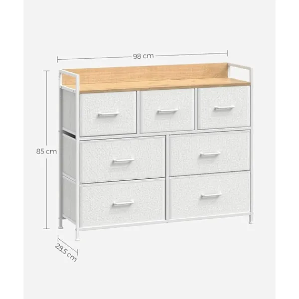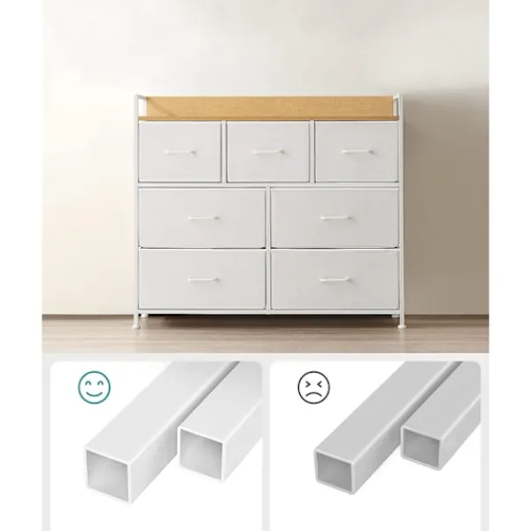 [För lagring och sortering] med 7 lådor (4 stora och 3 små), lagra dina ägodelar efter kategori. Varje stor låda rymmer 60-70 strumpor, 13-16 T-shirts eller 7-11 byxor, varje liten låda rymmer 40-45 strumpor, 9-10 T-shirts eller 4-7 byxor[Stabil och säker] Denna byrå är utrustad med justerbara fötter som säkerställer stabilitet även på ojämn mark. Det inkluderade anti-TIP-kitet säkerställer ytterligare stabilitet och säkerhet[Mångsidig] Använd det i ditt sovrum eller omklädningsrum för att lagra kläder, i ditt vardagsrum för växter och dekorationer eller använd det som TV -stativ[Easy Assembly] Tack vare de numrerade delarna och illustrerade instruktionerna är monter av detta 7 lådskåp en bris[Sidstänger och upphöjda kanter på baksidan] staplar på sidorna och upphöjda kanter på baksidan förhindrar att dina föremål faller. Barer kan också användas som handtag för att byta plats