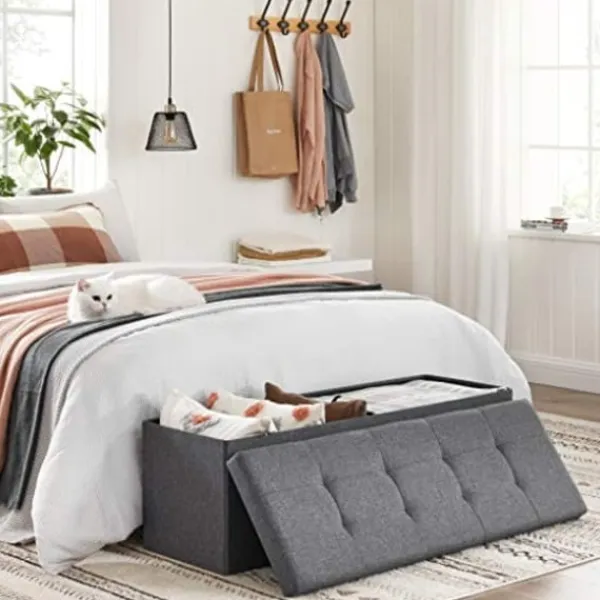 Enkelt och dekorativt utseende: Ett känsligt och mångsidigt bänkstycke kan användas sänglåda, bokhylla eller fotpall, det matchar perfekt dina möbler i lounge, sovrum eller vardagsrum