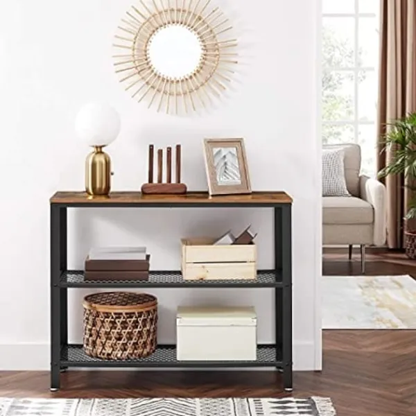 Vad du får: Ett konsolbord med en rustik topp och 2 mesh -hyllor, tydliga instruktioner för att förenkla montering och ett bra sätt att göra ditt hem mer attraktivt