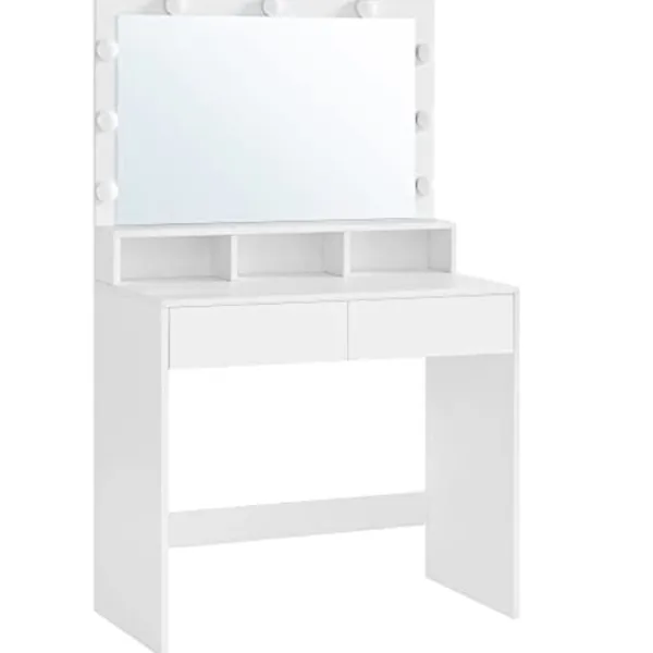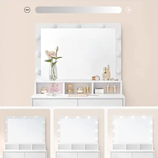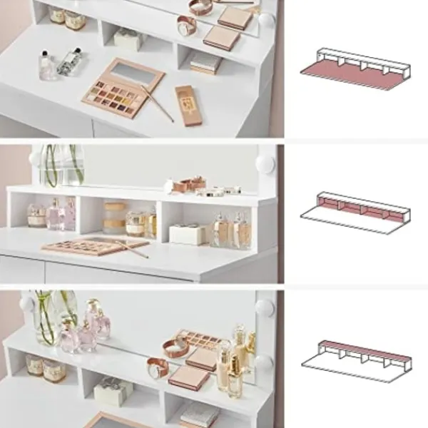 Mer beställning för din kosmetika: de två stora lådorna och de 3 öppna facken på toalettbordet ger tillräckligt med utrymme för din smink och gör att organisera din kosmetika till en bris