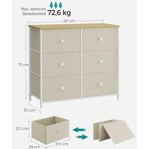 Med måtten 30 x 80 x 71 cm ger den gott om förvaring utan att ta upp för mycket golvyta, vilket gör den idealisk för små lägenheter eller rum.