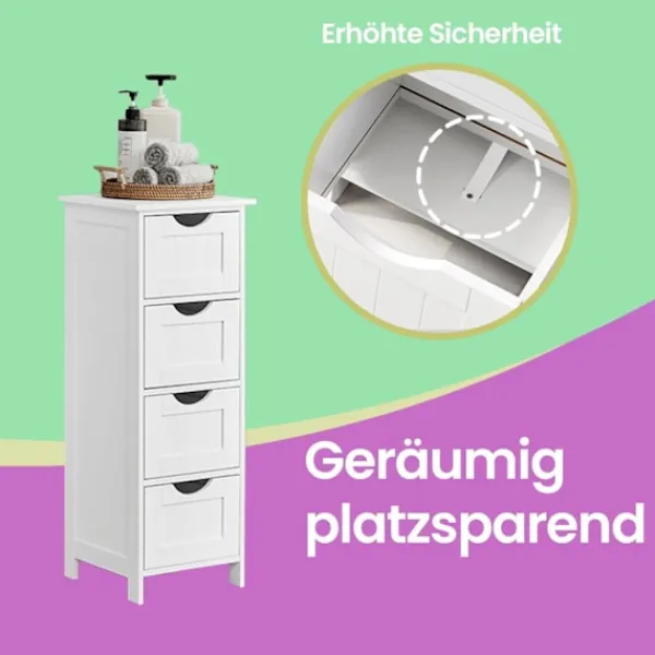 gott om lagring: Fyra rymliga lådor ger utmärkt organisation för ditt badrum eller nyttoföremål.
