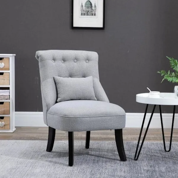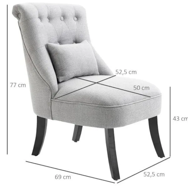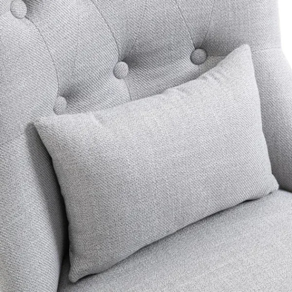 Denna eleganta fåtölj från Rootz kommer att bli ett blickfång i ditt vardagsrum eller matsal. Den tuftade ryggen och de böjda benen ger den en vacker vintagecharm. Den stabila klädseln och en ryggkudde, som stöder ländkotorna vid behov, gör det till en bekväm plats att läsa och se på TV. Överdraget av robust tyg är slitstarkt och lättskött. Ett stilfullt tillskott till alla boendeutrymmen.
