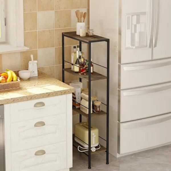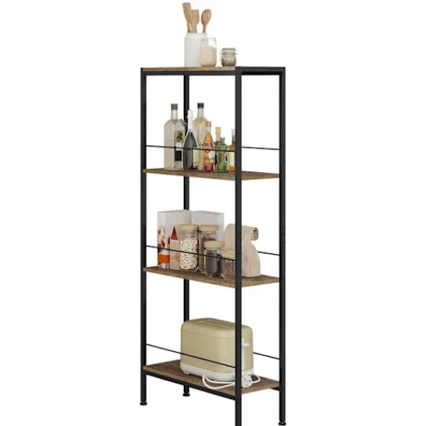 Förvandla ditt utrymme med rootz-nischhyllan-en mångsidig lagringslösning med fyra nivåer utformad från hållbara E1-MDF-paneler och en elegant metallram. Dess kompakta design gör den idealisk för trånga utrymmen, samtidigt som det erbjuder riklig förvaring för hem, kontor eller vardagsrum. Denna eleganta, brun och svarta hylla stöder upp till 60 kg, vilket ger både funktionalitet och estetisk tilltal.