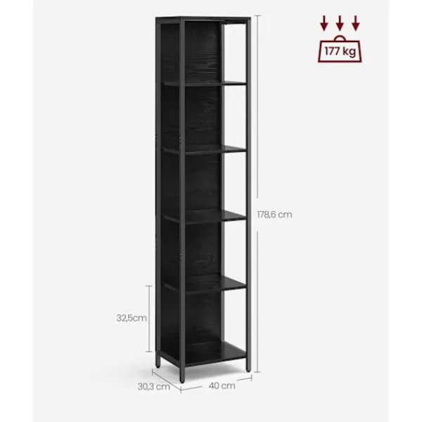 Rootz 6-våningsbokhylla i ebenholtssvart – modern och funktionell förvaringslösning