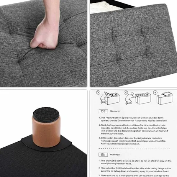Mångsidig – perfekt som låda, nattduksbord, skobänk eller fotpall etc. servering. Med avtagbart lock erbjuder den praktisk förvaring för leksaker, tidningar, böcker och kläder etc