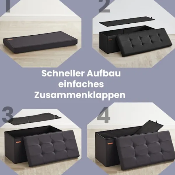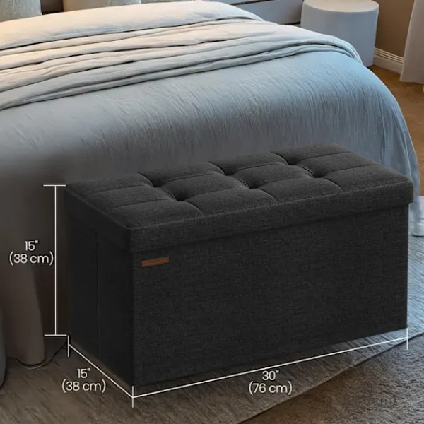 Rootz Stylish Ink Black Storage Seat Chest for Home Organization and Seating Solutions