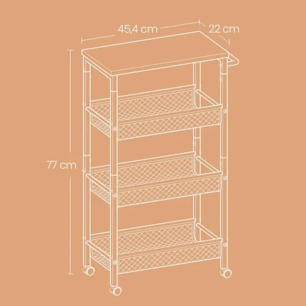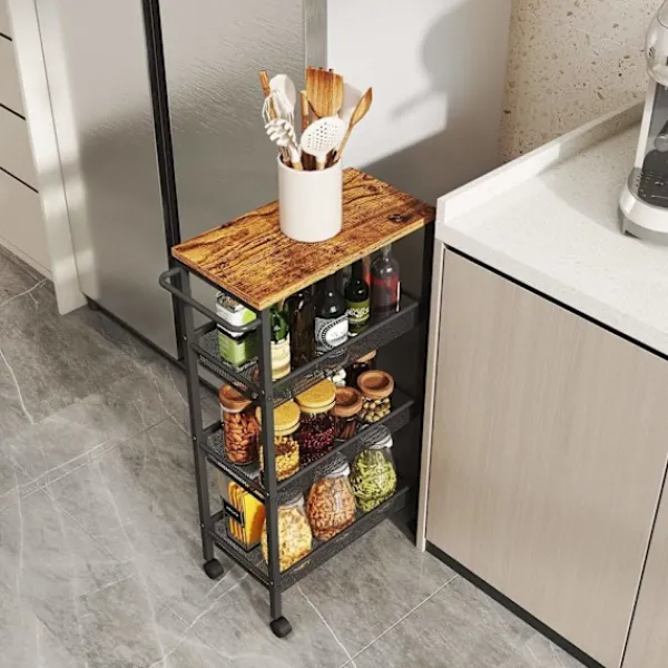 Rootz -travingvagnen: En mångsidig köksbil med 4 nivåer och en nischhylla för förbättrad lagring
