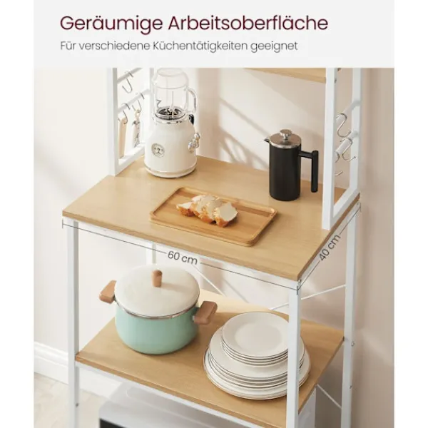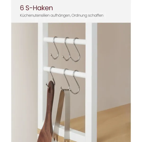Med flera hyllor och ytterligare upphängningsmöjligheter erbjuder detta köksställ stort förvaringsutrymme. Organisera dina nödvändiga kökssaker snyggt och få tillgång till dem bekvämt när som helst.
