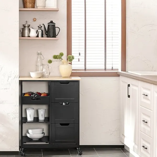 Utrustad med 3 stora lådor: Fler förvaringsmöjligheter för dina nödvändiga köksartiklar
