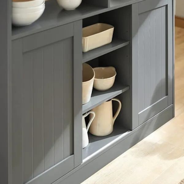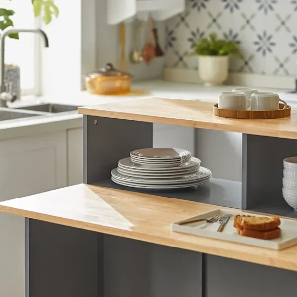 - Mångsidig möbel: köksö skänk med 2 skjutdörrar och utbyggbar bänkskiva.
