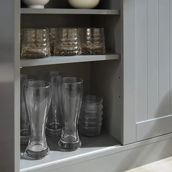 - 2 öppna fack under den högre bänkskivan och 6 justerbara hyllor ger dig gott om förvaringsutrymme.