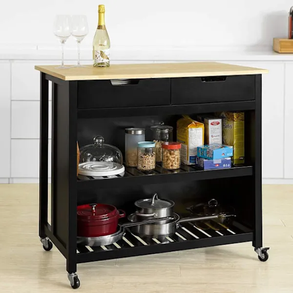 - Denna köksvagn med 2 lådor och 2 hyllor erbjuder gott om förvaringsutrymme för dig. 4 svängbara hjul (2 med broms) för enkel förflyttning.