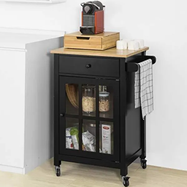 - Köksvagnen har en låda, ett skåp med invändig justerbar hylla och en handdukstork.