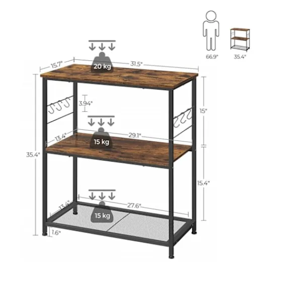 Rikligt förvaringsutrymme: Tre rymliga hyllor och robusta krokar för upphängning av redskap.