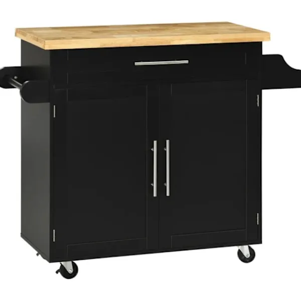 HÅLLBAR MATERIAL: Bänkskivan för köksvagnen är gjord av vattentätt gummi och MDF-trä, vilket gör den hållbar och lätt att rengöra
