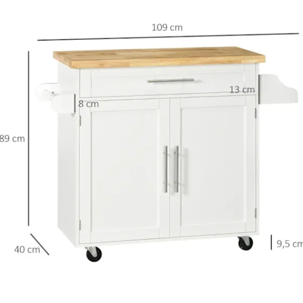 HÅLLBAR MATERIAL: Bänkskivan för köksvagnen är gjord av vattentätt gummi och MDF-trä, vilket gör den hållbar och lätt att rengöra