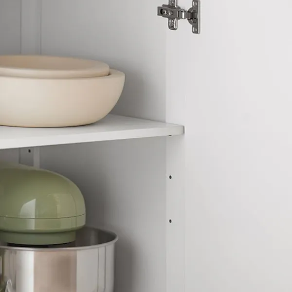 Vagnen har en justerbar hylla bakom dörrarna, så att du kan anpassa förvaringsutrymmet för att passa föremål i olika storlekar, från stora krukor till små kryddor, vilket förbättrar din köksorganisation.