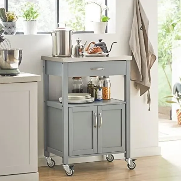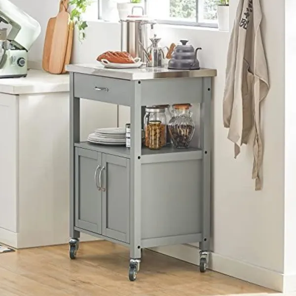 - Platsbesparande köksvagn erbjuder mycket förvaringsutrymme för olika redskap i ditt kök.