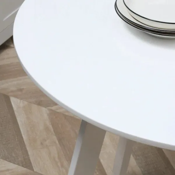 RUND BORDSSKIVAN: Två personer kan sitta bekvämt vid detta kompakta köksbord och njuta av en utsökt måltid, dricka kaffe eller bara ha en avslappnad pratstund.