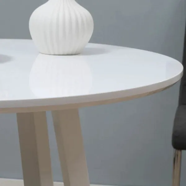 - Vit, glansig bordsskiva för en modern, tidlöst elegant look