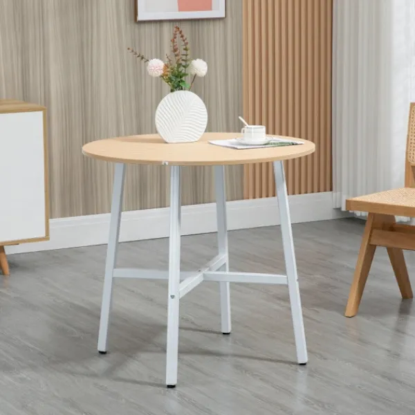 Förbättra din matplats med matbordet Rootz med en varm träfärgad bordsskiva och robusta metallben. Detta bord i industriell stil lägger till en touch av modern charm till ditt rum och erbjuder gott om plats för upp till fyra personer. Den rundade designen förhindrar kollisioner, medan de robusta metallbenen kan bära upp till 60 kg. Halkfria fotkuddar säkerställer stabilitet, vilket gör den perfekt för kompakta rum.