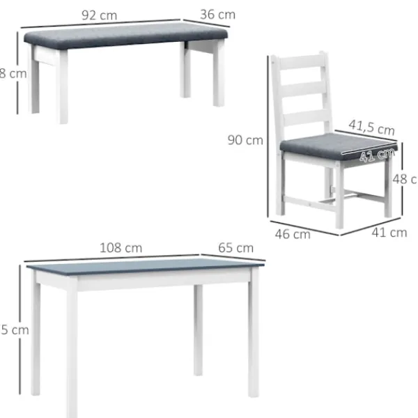 - Viktkapacitet: 50 kg (bord), 200 kg (bänk), 120 kg (stol)