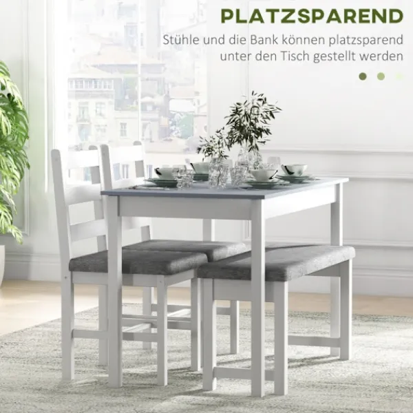 Utrymmesbesparande design: 2 stolar och 1 bänk kan skjutas in under bordet för att spara utrymme och få ditt rum att se större och mer organiserat ut.