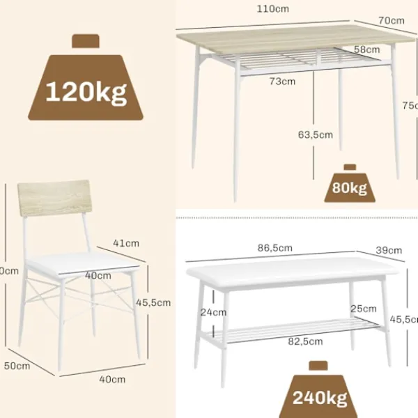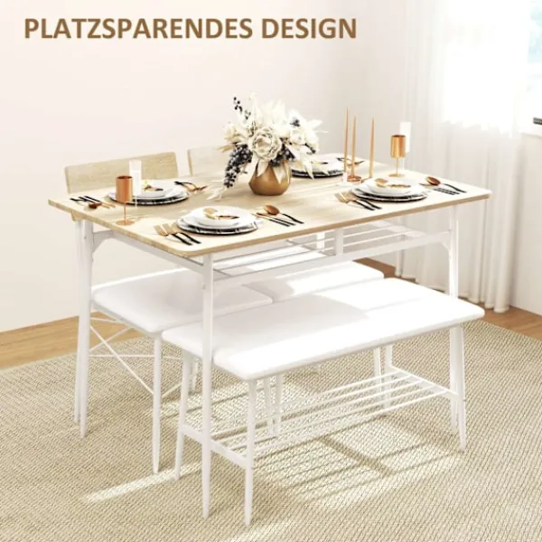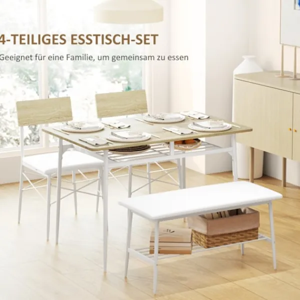 Innehåller ett matbord med 2 stolar och en bänk: Komplett matuppsättning för 4 personer för mångsidig användning