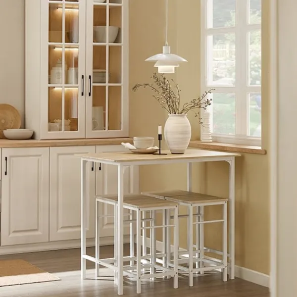 De rena linjerna och moderna siluetten hos detta bistrobordsset gör det till ett perfekt komplement till alla kök, matsalar eller barer. Dess minimalistiska design kompletterar alla inredningstema från modernt till rustikt.