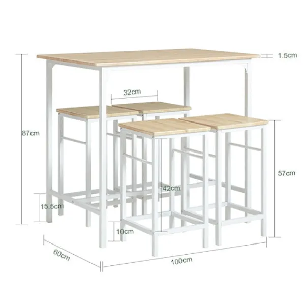 Förbättra ditt hem med Rootz 5-delade barbordsset, designat för att smälta in sömlöst i alla inredningar. Detta mångsidiga set är idealiskt för små utrymmen och erbjuder både funktionalitet och ett elegant, modernt utseende.
