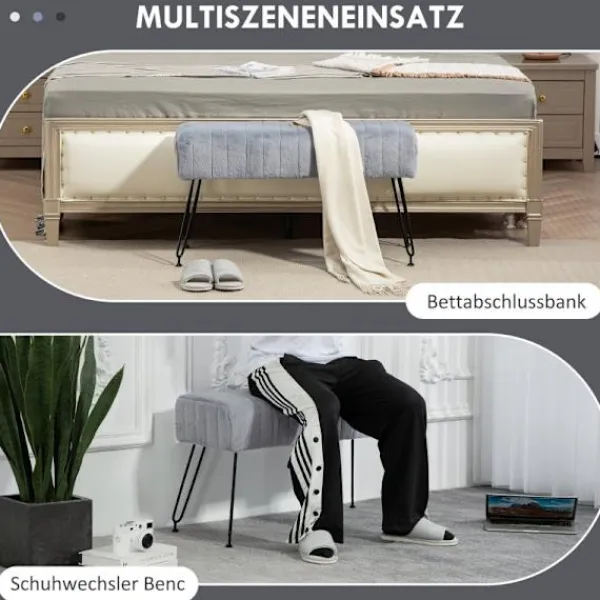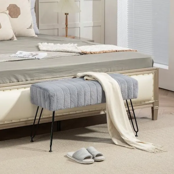 Höj ditt utrymme med denna 82 cm breda bänk klädd i mjuk fuskpäls för maximal komfort. Perfekt för entréer, sovrum eller vardagsrum.