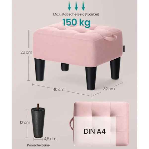 Denna fantastiska rootz-säte i rosa och svart är utformad med högkvalitativ sammet, skum, MDF och PP-plast. Det är ett elegant tillskott till alla rum designad för både komfort och stil. Avföringens mjuka sammetyta är tilltalande för att röra och komplement varierade dekorstilar. Det är robust utformat för att motstå upp till 150 kg och kombinera både estetik och praktik.