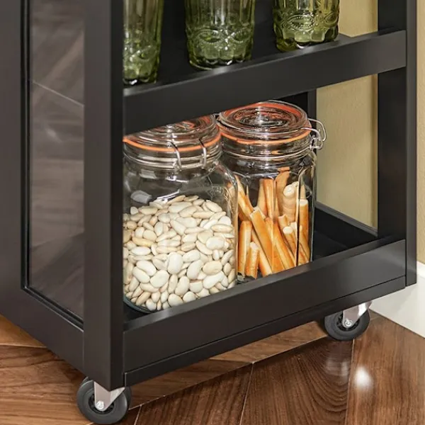 Tre öppna hyllor på sidan av vagnen ger snabb åtkomst till ofta använda föremål, vilket hjälper dig att hålla ditt kök organiserat och effektivt.