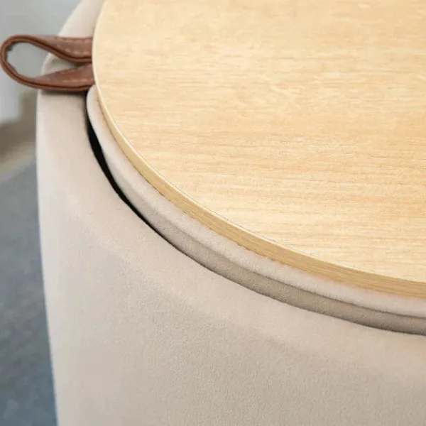 MULTIFUNKTIONELL: Den runda ottomanen kan användas som soffbord, pall, förvaringsutrymme eller som en extra sittplats i vardagsrummet eller allrummet.