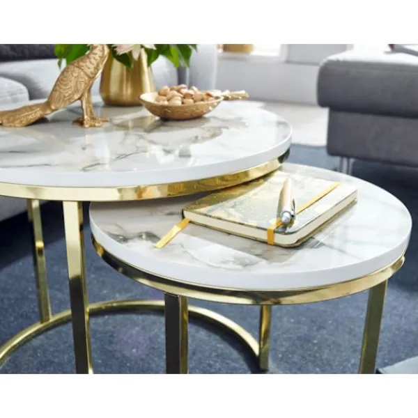 - Två runda sidobord i modern stil