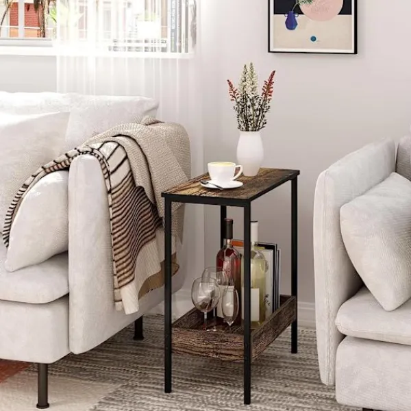 Rootz Modern Metal Wood Sidobord är ett mångsidigt och hållbart stycke perfekt för olika utrymmen. Med en design med dubbla lager erbjuder detta bord gott om förvaring för böcker, växter och mer, samtidigt som det ger en touch av modern elegans till ditt rum.