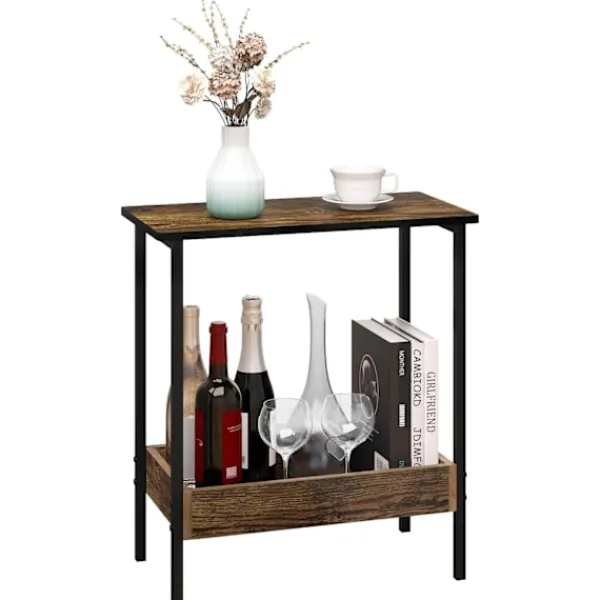 Tålig: Tillverkad av E1-trämaterial och rostsäker metallram, med en lastkapacitet på 20 kg på den översta hyllan och 15 kg på den nedre hyllan.