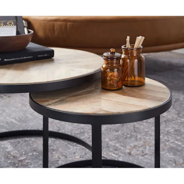 Design: Rootz Coffee Tables är två runda sidobord i spännande industriell stil. De två borden finns i olika storlekar.