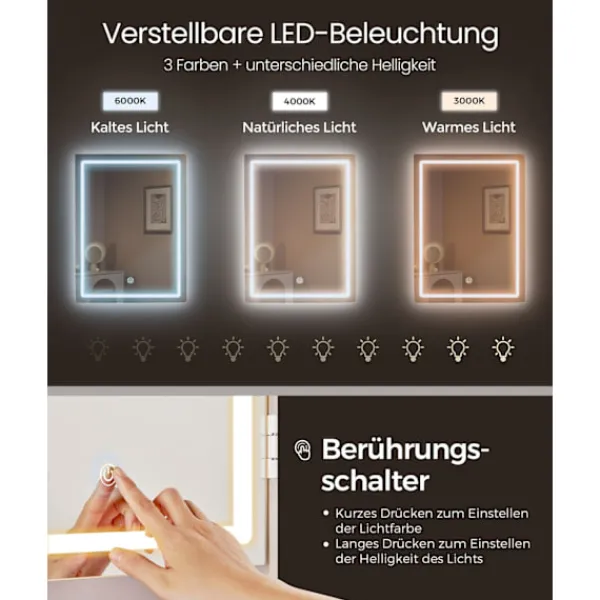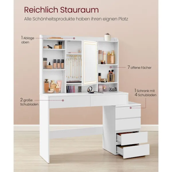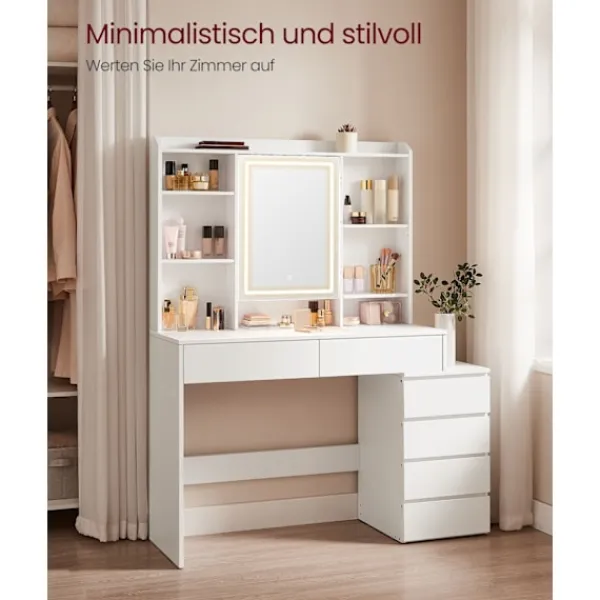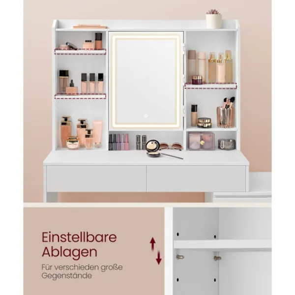 Förbättra din dagliga skönhetsrutin med detta moderna sminkbord med inbyggd LED-belysning.