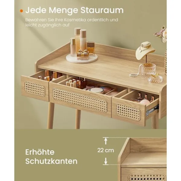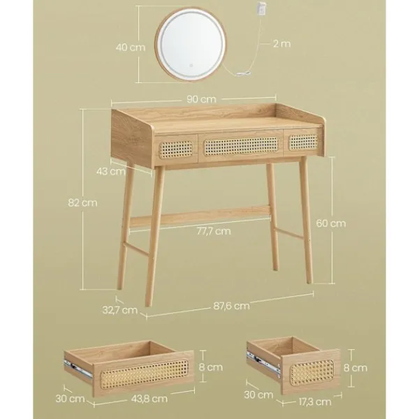 Rootz Sminkbord med spegel och belysning i ekbeige finish