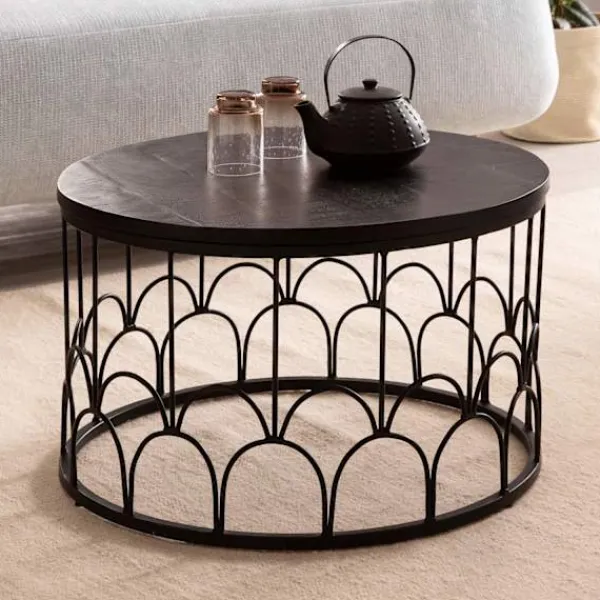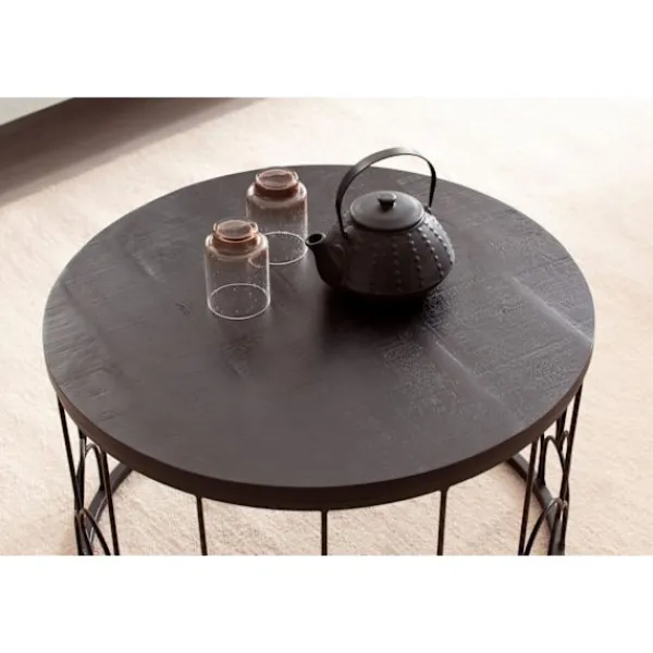 Detta soffbord från Rootz är en perfekt blandning av industriell design och funktionalitet. Handgjord av massivt mangoträ och pulverlackerat järn, den har ett uttrycksfullt och naturligt träår, vilket gör varje del unik. Dess ram, som består av många bågar, ger en trendig touch till varje vardagsrum.