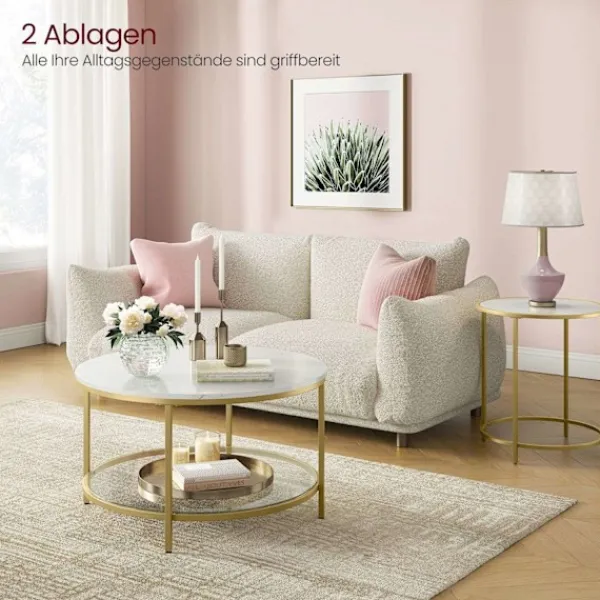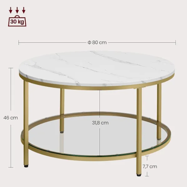 Det här soffbordet har ett Marble White-Metallic Gold färgschema som ger en touch av elegans till alla rum. Dess mångsidiga design passar bra med olika inredningsstilar.