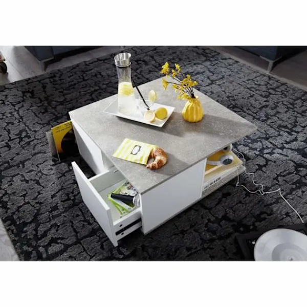 Rootz Coffee Table är ett soffbord i fyrkantig form. Under bordsskivan har bordet gott om förvaringsutrymme för dina tidningar och böcker. Bordet har två förvaringsutrymmen i de 2 utdragbara lådorna och även i de två öppna förvaringsfacken! Ovanpå bordet har du mer än tillräckligt med utrymme för dina förnödenheter. Letar du efter ett fyrkantigt soffbord med mycket förvaringsutrymme? Kolla inte vidare!